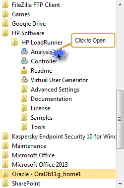 要启动 HP Controller,请转到“开始”菜单 -> HP Software -> HP LoadRunner -> Controller,如下图所示