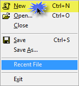 如果“新建场景”屏幕没有自动出现(在您更改首选项后),您可以单击“文件”菜单下的“新建”按钮,或单击 按钮,或者按 Ctrl + N。下面显示了菜单供参考。