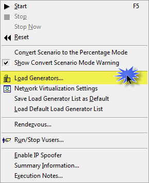 另一种添加和配置负载生成器的方法是单击“场景”菜单,然后单击“负载生成器”。