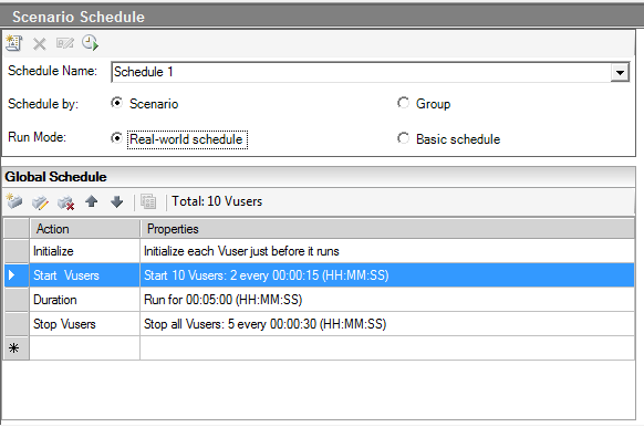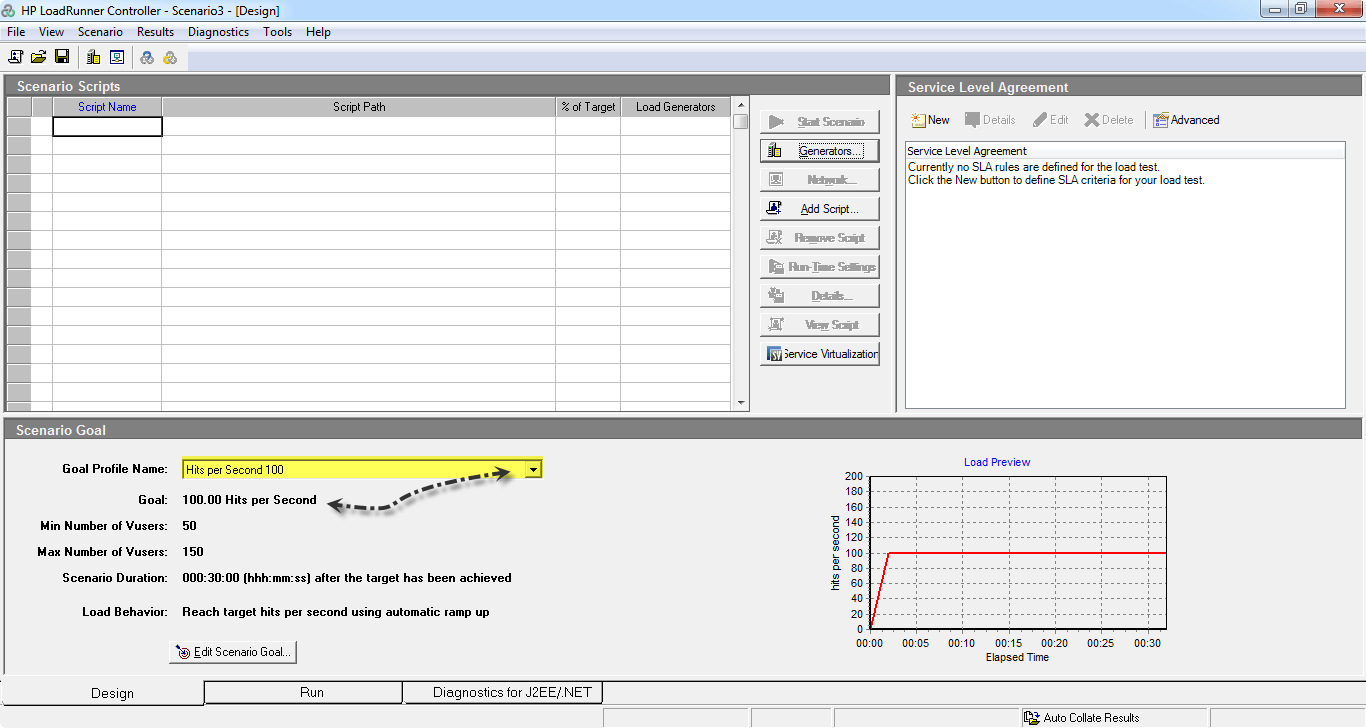 面向目标场景是动态的——这意味着它会不断改变模拟到服务器的总体负载。您设置一个目标,例如,您希望为目标服务器达到的最大命中次数,事务的响应时间最大值等。