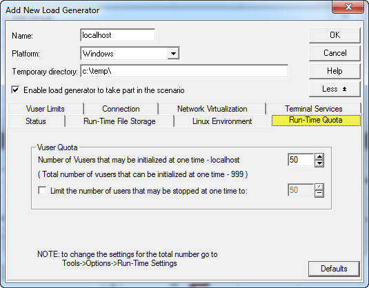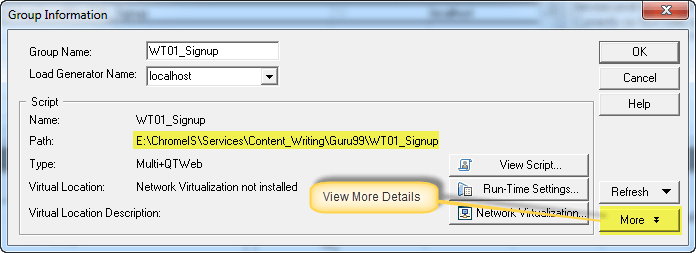 单击 按钮将打开运行时设置,就像我们在 VUGen 中研究的那样。但是,如果您在此处覆盖(或修改)运行时设置,则更改仅对当前场景有效。如果您删除脚本并重新加载,或者单击“详细信息视图”中的“刷新”,您将丢失所做的任何更改。这将重新加载创建脚本时保存的运行时设置。
