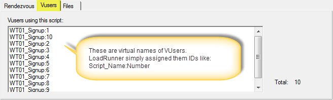 您还可以在“VUsers”选项卡中看到 VUsers 列表。如果您为 VUsers 分配了 ID,您将在此处看到它们。