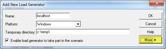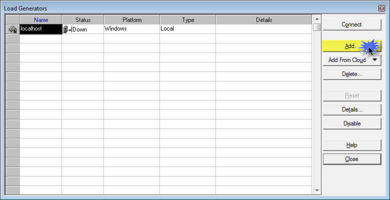 您可以单击“添加”对应的“负载生成器名称”并浏览您的负载生成器,或者,您可以直接键入“localhost”并开始使用您的 controller 机器作为负载生成器。