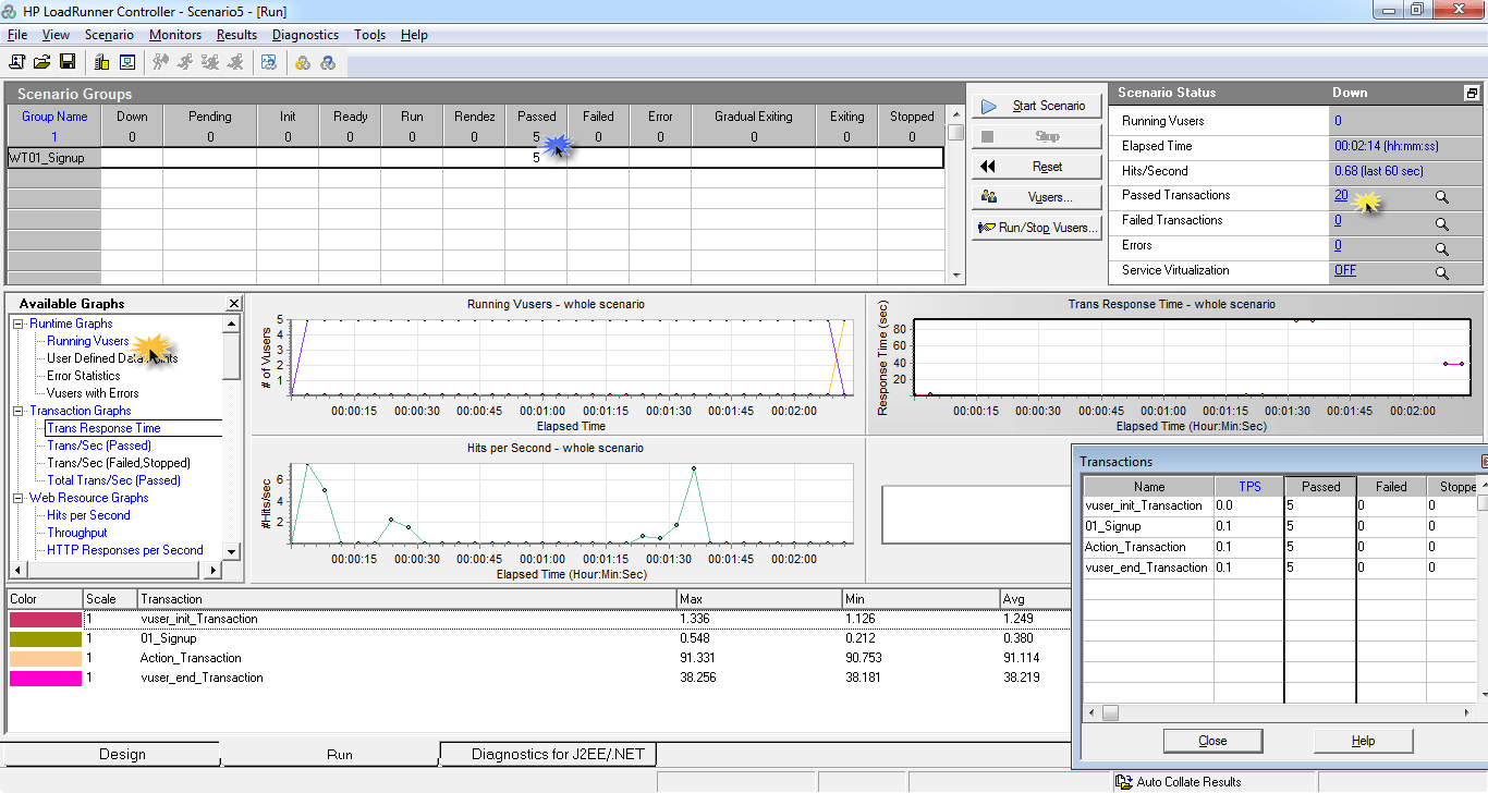在窗口底部,您可以看到哪些事务正在通过,到目前为止任何用户花费的最短时间、最长时间、平均时间和标准偏差。