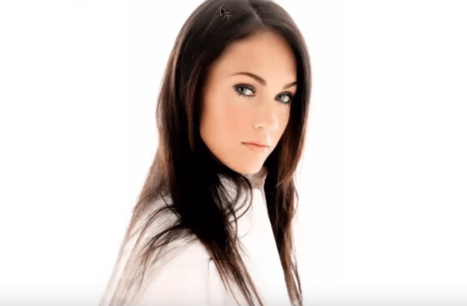 这里有一个模型,我们想使用 Photoshop CC 中的提取工具快速提取她的头发。