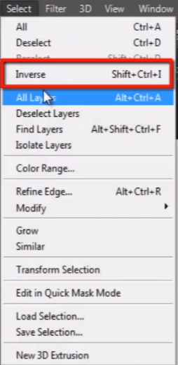 现在我们要提取模型,所以我们必须选择她,转到选择菜单并选择“反选”,这样它就会反转选区。
