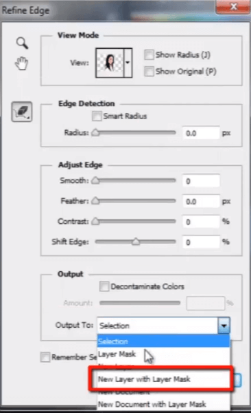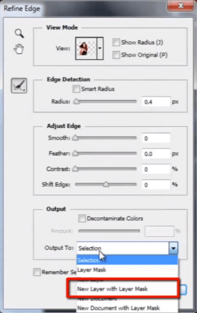 您在这里可以看到模型边缘周围有一些透明像素。所以现在更改“输出”选项的设置。从下拉列表中选择“带图层蒙版的图层”。