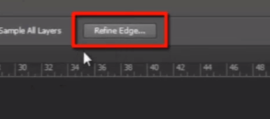我们的选区已经完成,但仍然不是完美的,因为它周围选择了非常锐利的边缘,并且边缘上有一些像素没有被选中,还有一些不想要的像素被选中了。为了解决这个问题,我将点击选项栏中的“细化边缘”按钮。