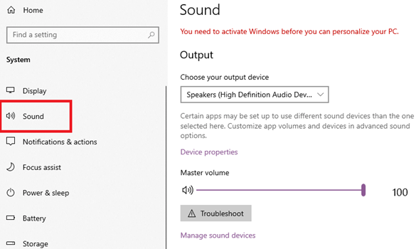 单击计算机上的开始菜单,然后选择设置。在提供的选项中选择系统,然后选择声音。