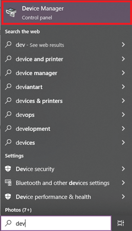 右键单击开始菜单,选择设备管理器,或在搜索框中键入它。