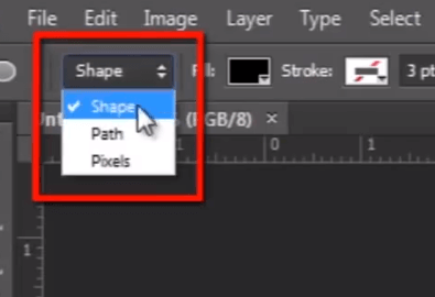 查看选项栏,在第二个位置,您可以看到一个菜单。它将为您提供三种绘制形状的选项,例如“路径”、“形状”和“像素”。