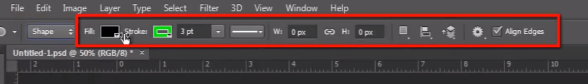现在让我们在顶部的选项栏中编辑形状的颜色和描边属性。