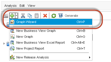 步骤 1) 要创建新的项目报告,请从分析模块点击“+”图标并选择“新建项目报告”。