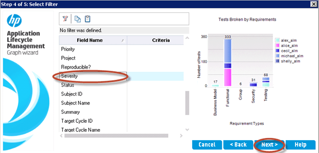 步骤 5) 向导还允许您输入筛选条件。如果没有应用筛选器,则图表将通过考虑“缺陷”模块中所有可用数据来生成。