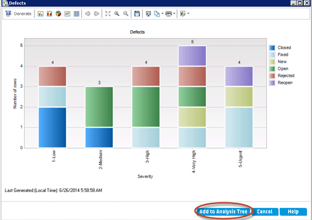 步骤 7) 图表是根据用户在图表向导中设置的条件生成的。我们可以将其“添加到分析树”,以便我们可以刷新图表以获取当前状态。