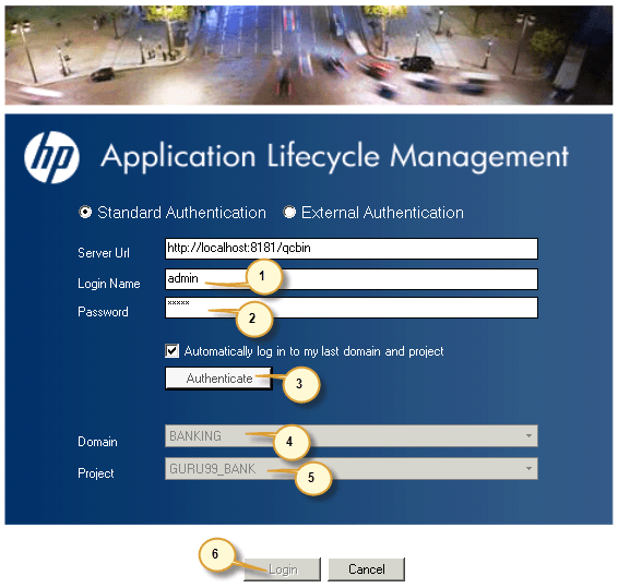 步骤 6) ALM 登录对话框打开。