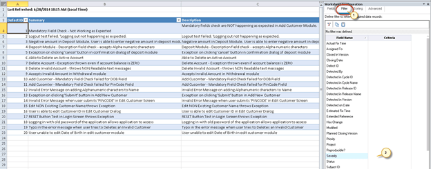步骤 7) Excel 报告已生成,包含所有缺陷列表,用户可以对其进行配置。