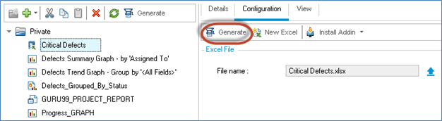 步骤 11) 现在用户可以从 ALM 生成报告。点击“生成”。