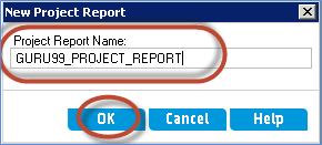 步骤 2) 新的项目报告对话框打开。输入项目名称并点击“确定”。