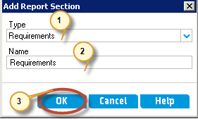 - 输入报告部分的名称。