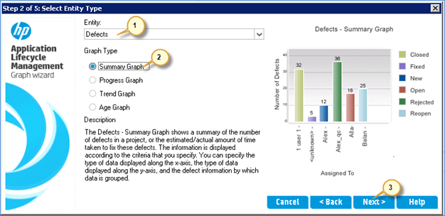 实体图表:ALM 允许用户根据特定实体类型(例如需求、测试、测试实例、测试运行或缺陷)生成图表。对于每个实体,有以下不同的图表类型可用。