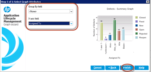 步骤 6) 向导允许用户选择 X 轴并按某个字段分组,然后单击“完成”。