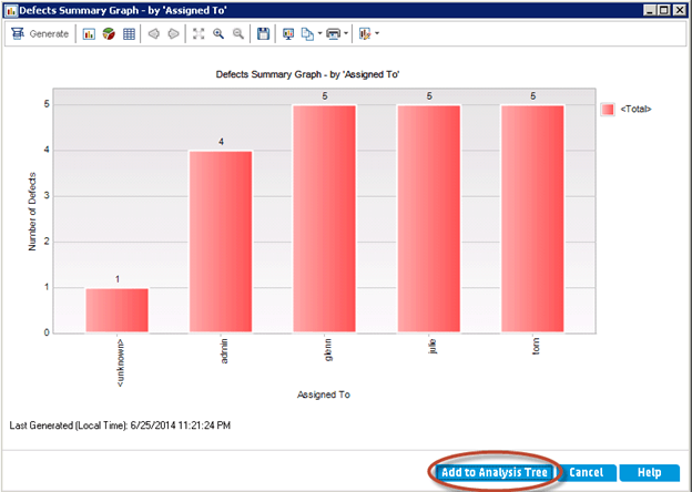 步骤 7) 图表根据所选条件生成。单击“添加到分析树”。