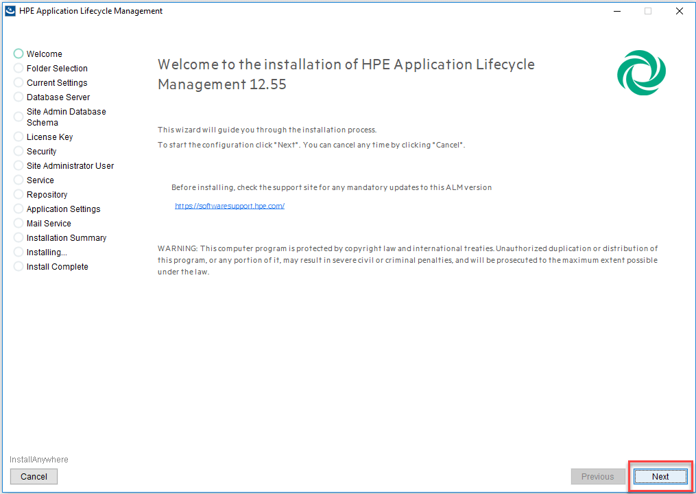 到目前为止,我们只安装/复制了 ALM 所需的安装文件。安装成功后,安装程序将继续进行服务器配置向导