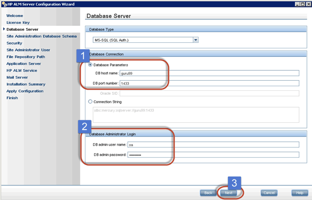 步骤 2) 输入服务器详细信息。您应该已经预装了 Oracle/MS SQL Server。选择适当的数据库凭据并点击“下一步”。