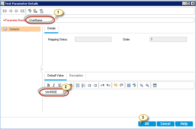 步骤10)参数帮助用户为变量赋值,允许用户使用不同的数据集执行相同的测试。在这种情况下,用户名和密码可以是两个将被赋值的参数。我们将在“测试实验室”模块中了解测试执行时拥有参数的重要性。