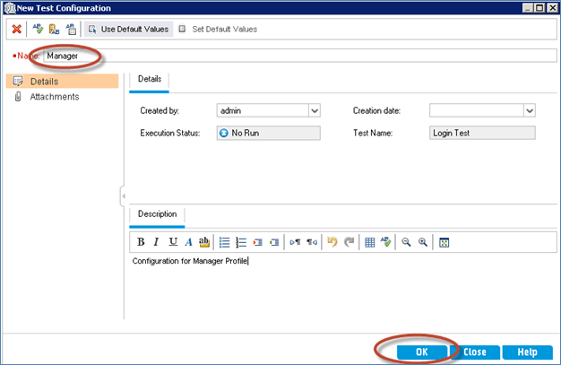 步骤21)重复上述步骤,为“部门主管”创建另一个测试配置,所有测试配置将显示给用户,如下所示。这将允许测试人员在测试执行期间针对所有创建的配置单独执行相同的测试,从而无需重写测试。