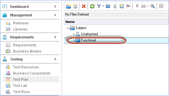 注意:我们无法从ALM创建自动化测试脚本/性能测试脚本;相反,它们必须从相应的HP工具中创建,例如用于功能的UFT和用于性能的Load Runner。然后将其保存到ALM中,以便可以安排、执行、监控和报告。