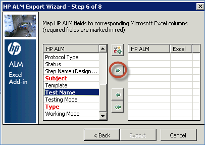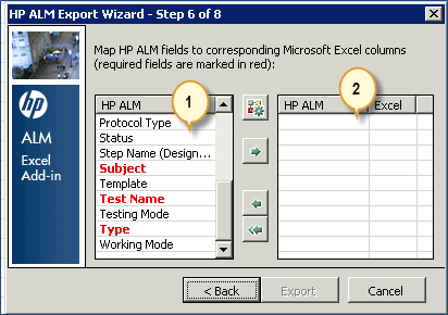 - 将Excel中所有必需的列映射到HP ALM中相应的字段。映射所有必需字段后,点击“导出”。