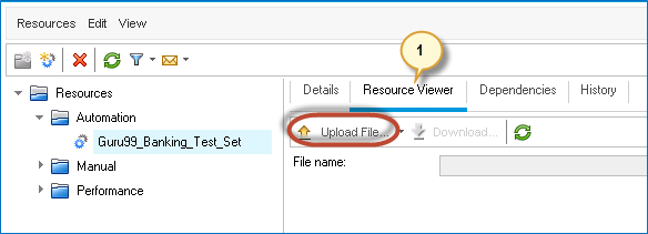 步骤7)创建测试资源后,现在我们需要上传该资源,以便它在“资源查看器”选项卡下可用,该选项卡将在所有测试中使用。