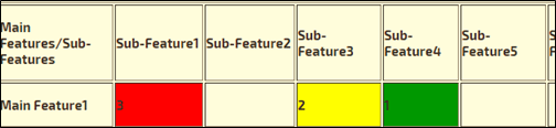 - 对于一个功能和功能更多的更大项目,上述表格可能无济于事。在这种情况下,会采用另一种方法,开发人员会直接标记主要功能中的更改所带来的影响级别。如下所示,其中主要功能的影响已针对各自的子功能进行了标记。