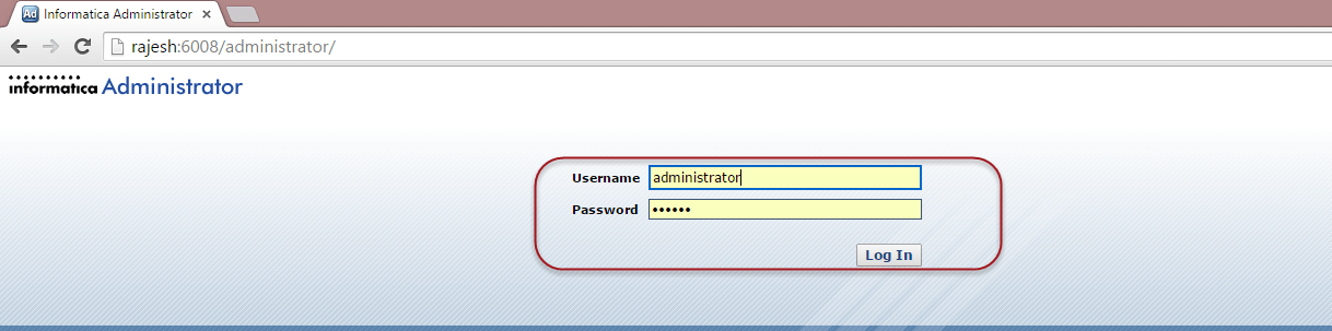 在 Web 浏览器中打开后,它会提示管理员登录。密码在 Informatica 安装期间设置。