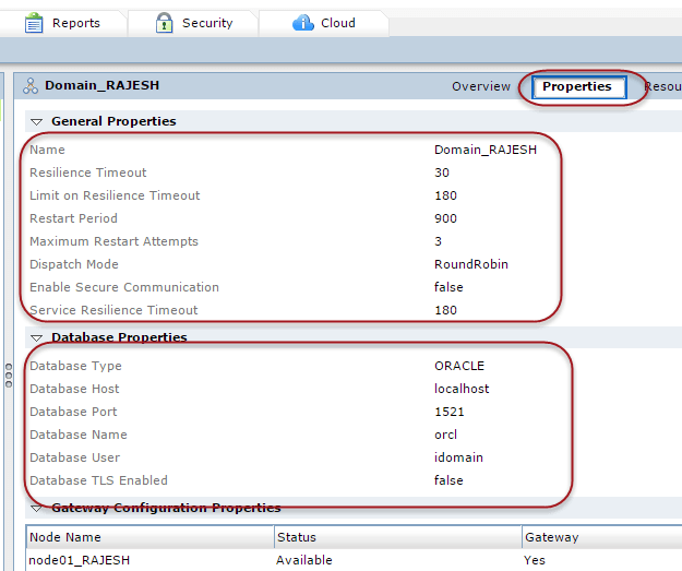 数据库端口和名称 – 这是域的数据库端口和数据库实例名称。