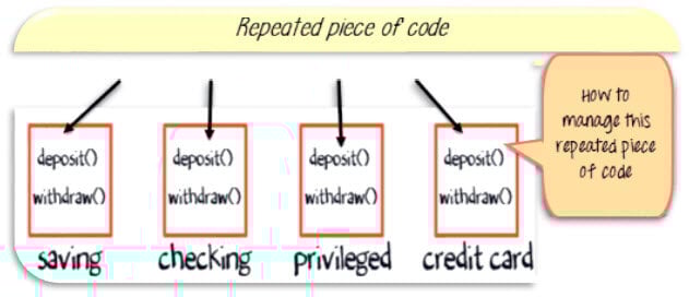 为了克服这一点,您可以创建一个父类,例如“account”,并在其中实现相同的存款和提款函数。然后让子类继承“account”类。这样,它们就可以访问 account 类中的提款和存款函数。这些函数不需要单独实现。这就是Java 中的继承。