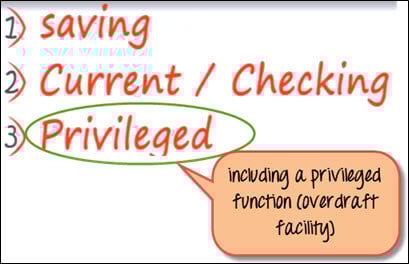 现在,需求规范中有一个更改,涉及到软件行业中非常普遍的一个功能。您需要添加具有透支功能的特权银行账户。背景是,透支是一种设施,允许您提取比您账户中可用余额更多的金额。