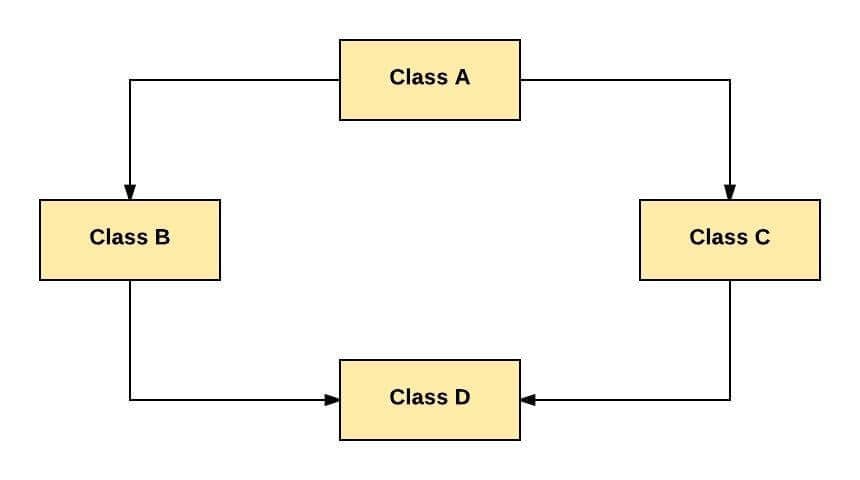 根据以上示例,A 类中的所有公共和受保护成员通过 B 类首先继承到 D 类,然后通过 C 类再次继承。