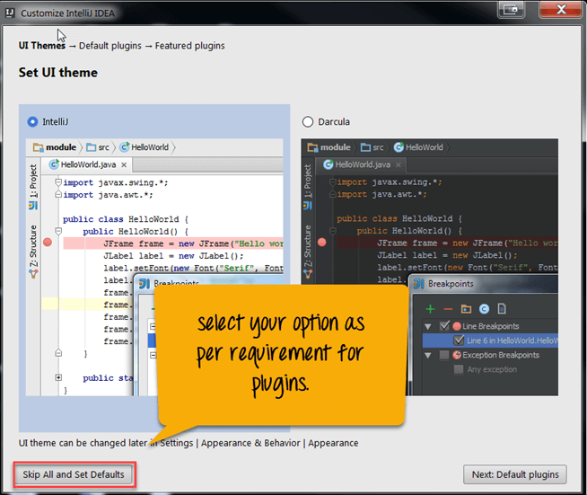 步骤 9) 如果您的系统上已经安装了旧版本的 IntelliJ。您可以将设置从旧版本导入到新版本。由于我们没有安装任何以前的版本。我们将选择第二个选项。