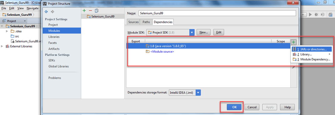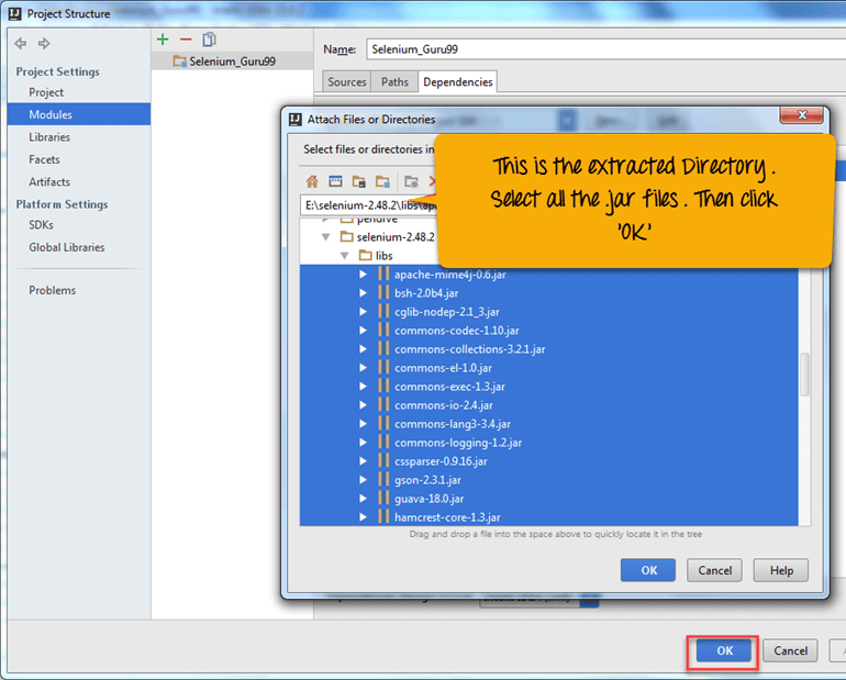 步骤 3) 现在您需要将 Selenium 的 .jar 文件作为外部库添加到 IntelliJ 中。