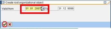 步骤 2)在下一个 SAP 屏幕中,输入组织单位的开始日期,然后单击复选标记。