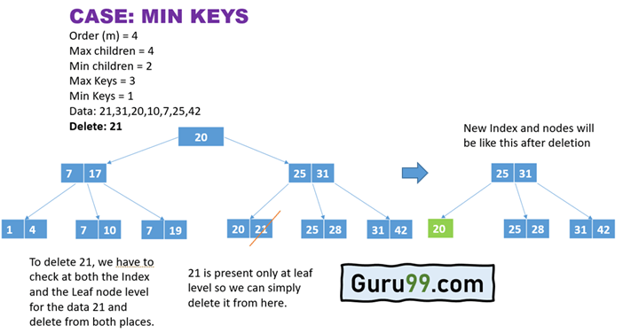 - 在此,元素只能在叶子级别准确识别,而不能在索引放置处识别。因此,可以在不影响删除规则(即最小键值)的情况下删除该元素。