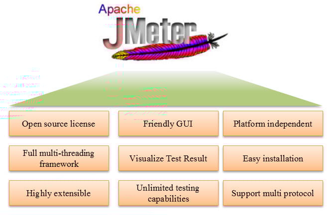 JMeter 的优点如下图所示