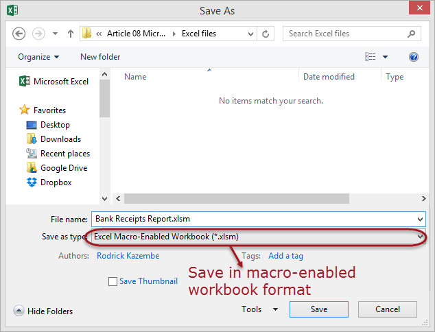 如果你想保存 Excel 宏,那么你必须将工作簿保存为启用宏的格式 *.xlsm。