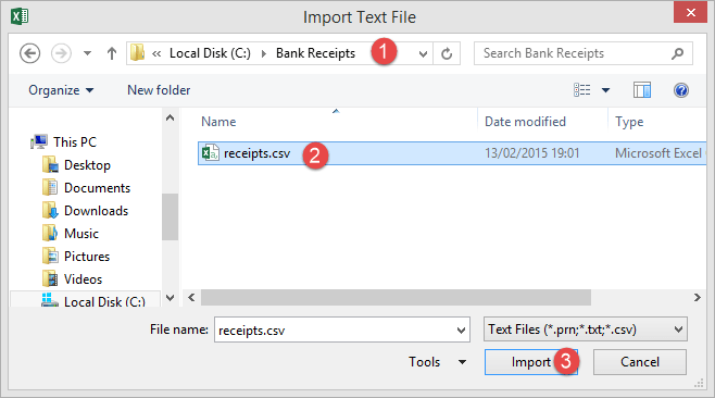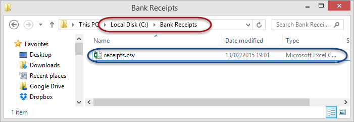 - 在 C 盘中创建一个名为 Bank Receipts 的文件夹。