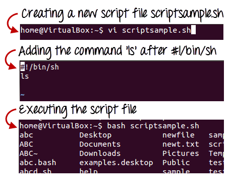 当我们执行 scrip sample.sh 文件时,将执行 'ls' 命令。