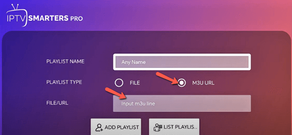 步骤 2) 现在,为您要播放的列表添加任何喜欢的名称。然后在提供的字段中添加 M3U URL。