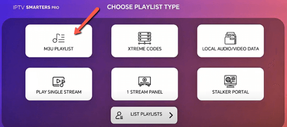 步骤 1) 选择屏幕上提供的播放列表类型的 **M3U Playlist (M3U 播放列表)**。